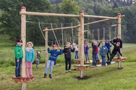 Dort gibt es auch einen Spielplatz mit Niedrigseilgarten, und die alte Kegelbahn darf benutzt werden!