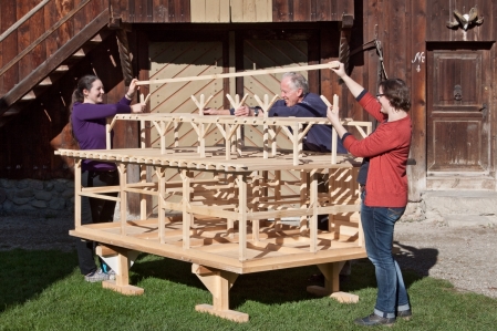 Die Teilnehmer/innen lernen die wichtigsten Bauweisen wie Massivbau, Blockbau und Ständerbau und bauen maßstabsgetreue Fachwerkmodelle auf.